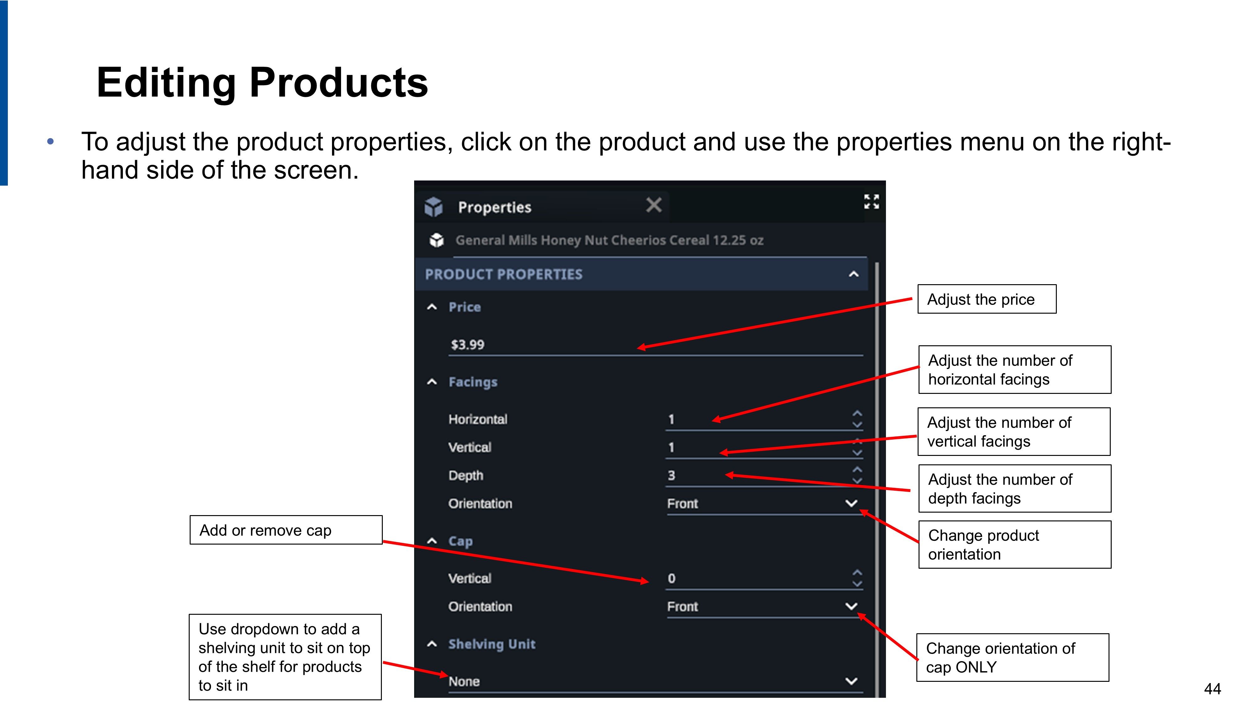 Merchandising | Edit product facings | Change orientation | Product Properties