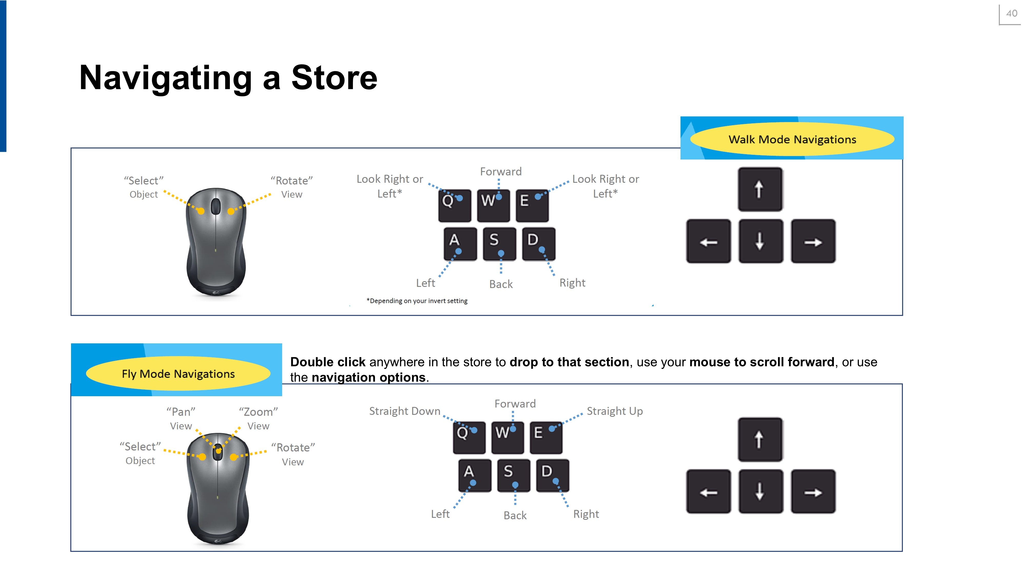 Move around a store | Keyboard and mouse controls