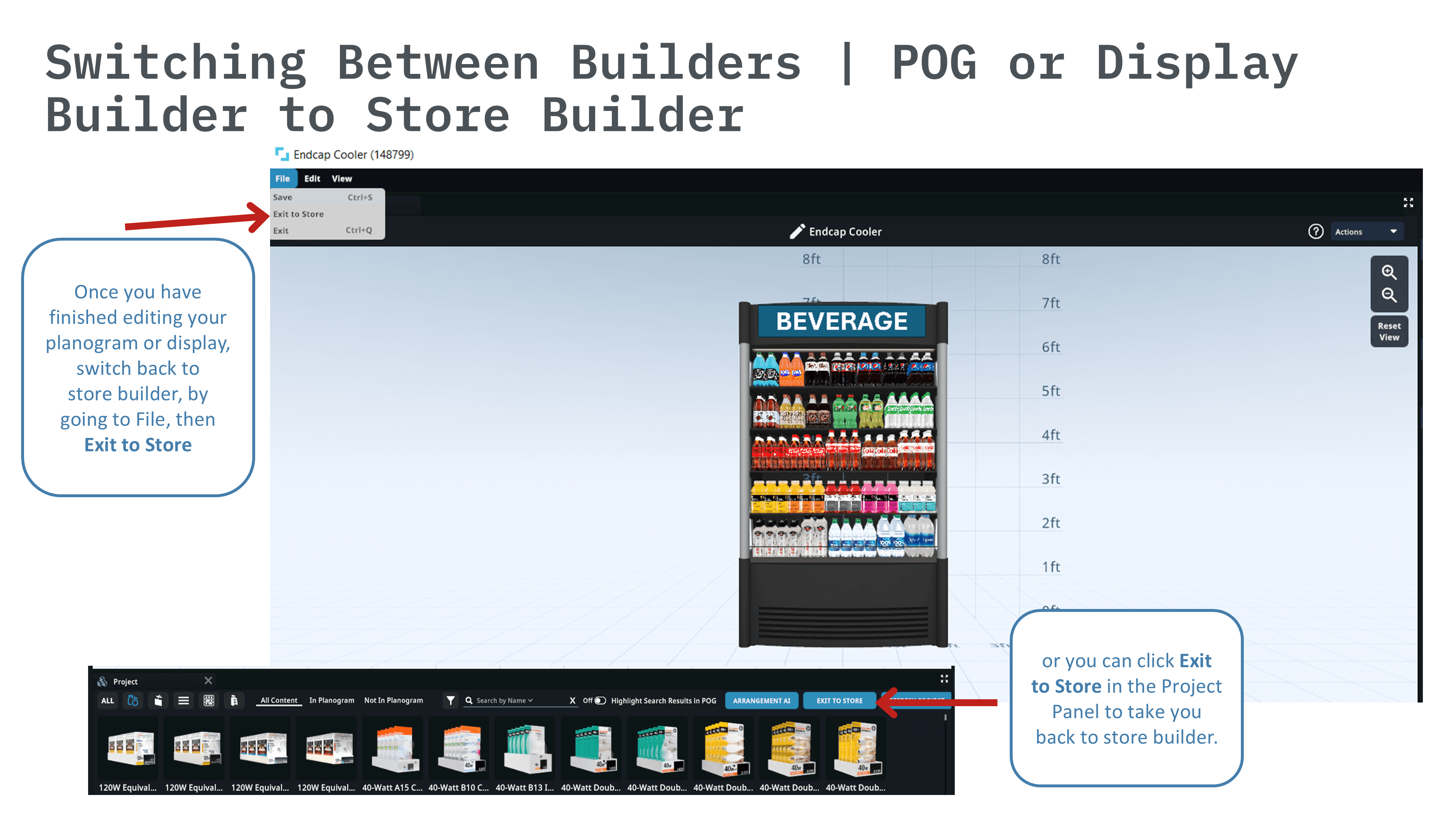Change from store to planogram | Switch to a different planogram