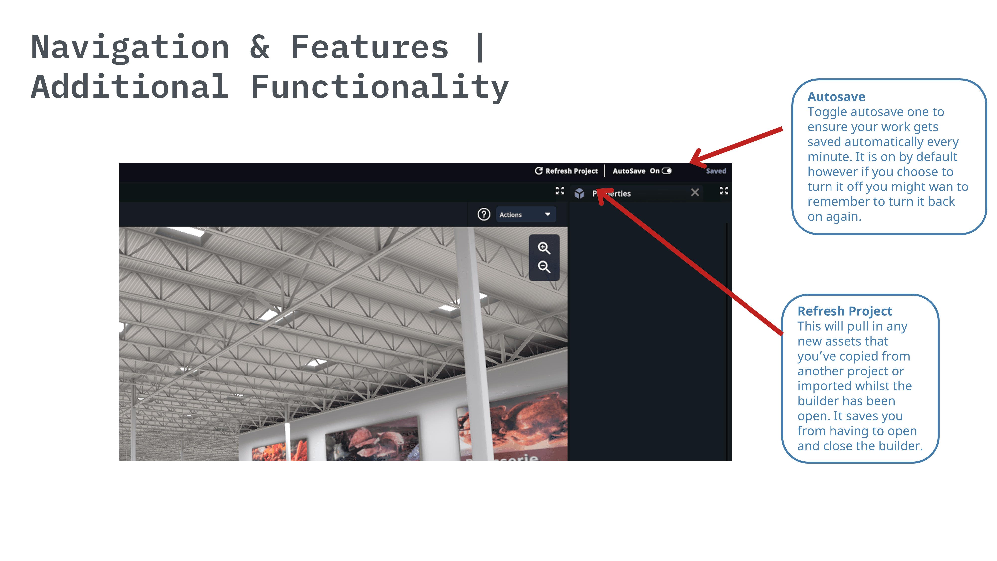 AutoSave | Refresh Project | Zoom In/Out | Switch between 2D and 3D | Reset View